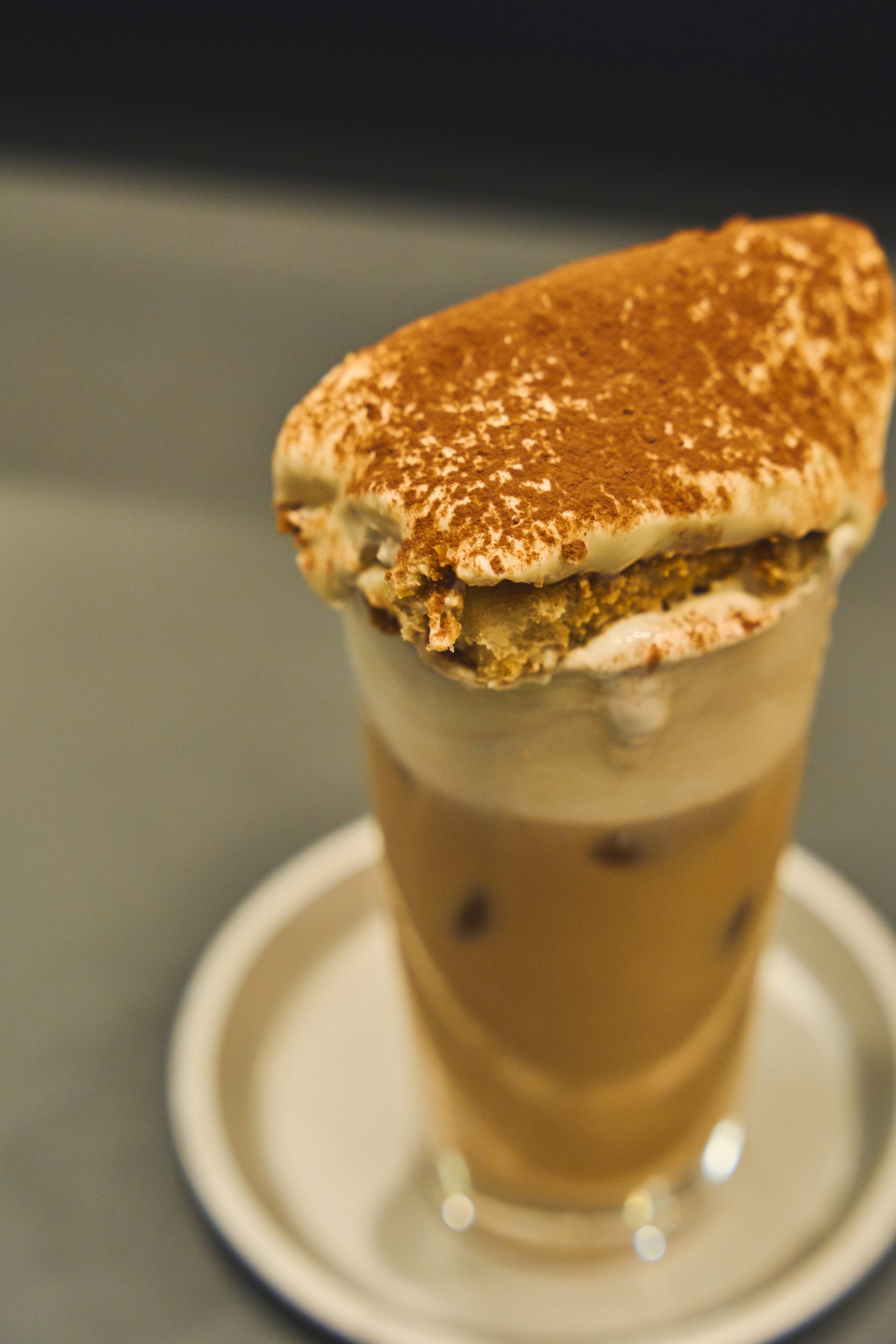 背徳バーガーのあとは、ティラミスラテでお口直しはいかが?甘すぎないマスカルポーネチーズとスポンジが以外といけちゃいます。ティラミスはそのまま食べても、崩してドリンクと一緒に飲んでも良し。飲めるティラミス、こちらも期間限定です。