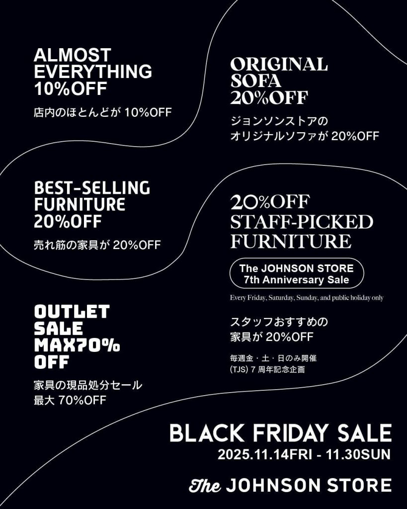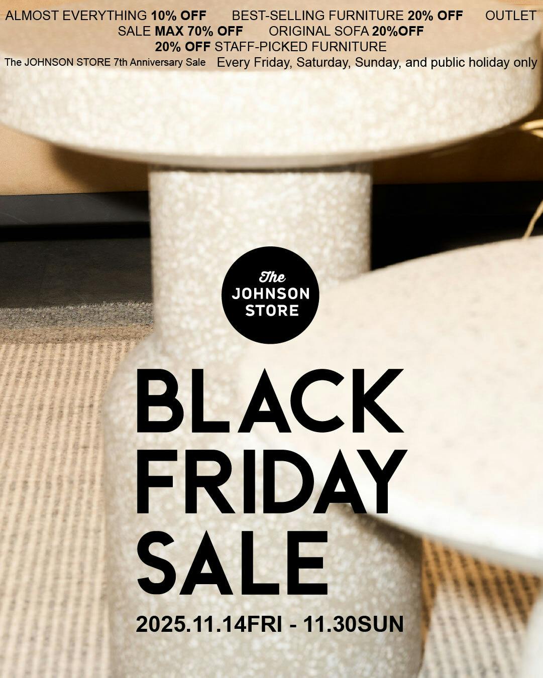 今年も寒いとうわさの札幌の冬は、買い物のための外出にも少し気合いがいる。だけど、ジョンソンストアのブラックフライデーが始まると聞いたら話は別だ。お気に入りのマグをもうひとつ買い足すのもいいし、ずっと迷ってた照明やソファをついに迎えるチャンスかもしれない。あの空間に並ぶ“いいもの”たちが、少しだけ近づく季節。