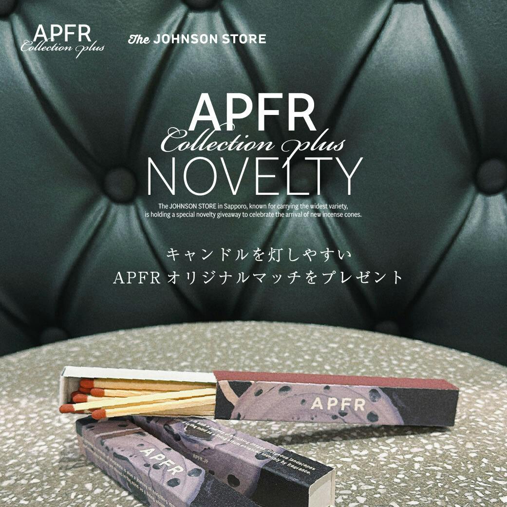 期間中、税込¥5,500以上のご購入でAPFR オリジナルマッチをプレゼント。キャンドル、インセンスなどにすぐ使えるマッチはミニマルで洗練されたラベルで、置くだけでインテリアになる。ぜひAPFRアイテムと一緒に、連れて帰ってください。
